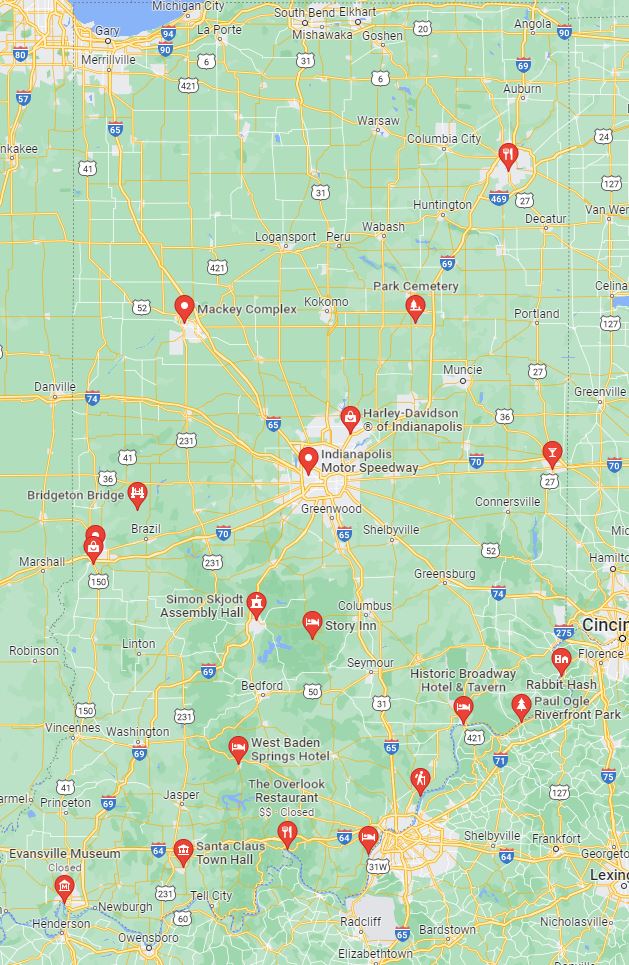 Come join us on a ride challenge adventure and cross 9 locations off your list. Leave HD of Indianapolis, stop by IU Assembly Hall, Evansville Museum, Santa Claus Indiana, Overlook Restaurant, and overnight at the Caesar's Casino. On Sunday visit Rose Island, Broadway Hotel in Madison, and the Riverfront Park in Vevay before heading home.