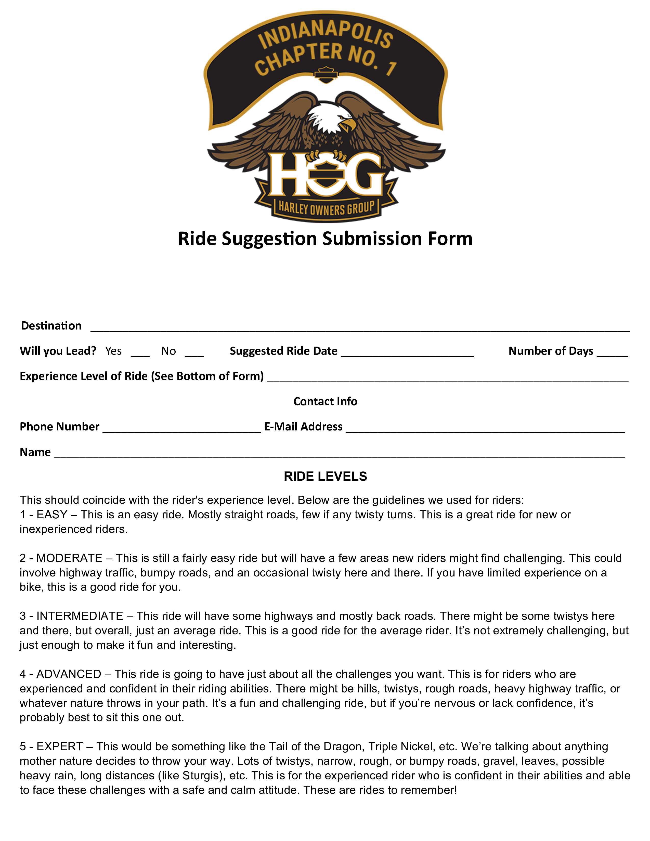 Open Event: This event is open to Chapter members, National H.O.G. members and other guests as desired.